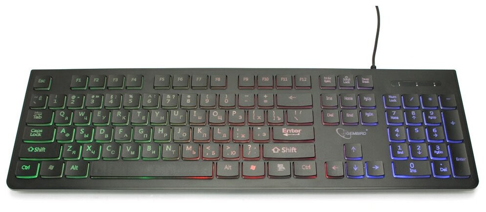 Клавиатура Gembird KB-250L 104кл, стандартная, подсветка символов радужная, кабель 1.5 метра, чёрная