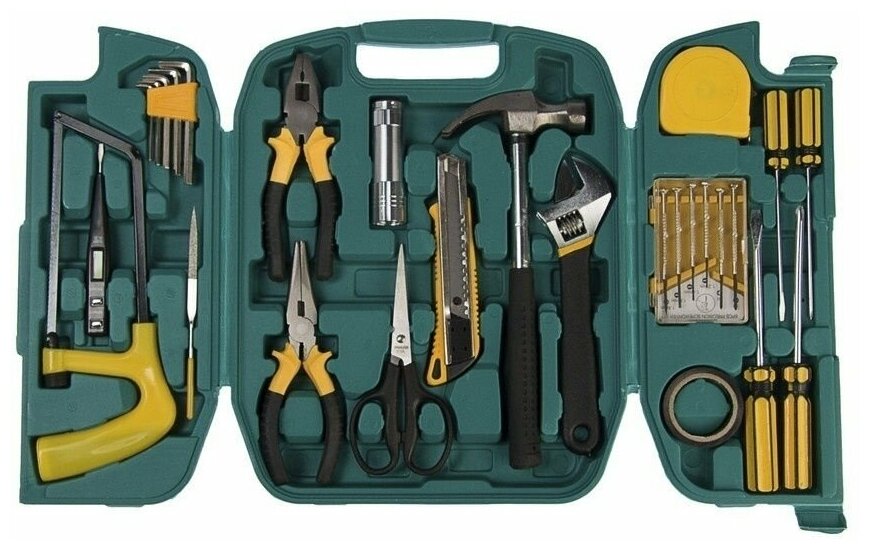 | Инструменты в комплекте | клещи / ключ разводной / молоток / ножовка по металлу / отвёртки / отвёртки для точных работ / пассатижи |