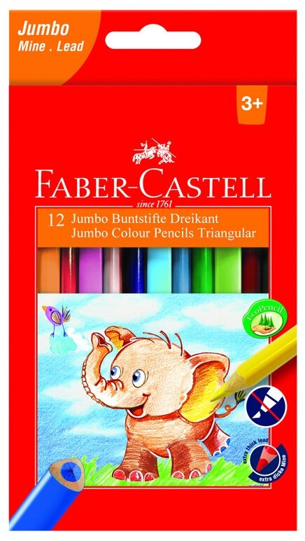 Отзывы на Карандаши цветные Faber-Castell "Jumbo" 12цв., трехгран., заточен., картон, с точилкой, 116501
