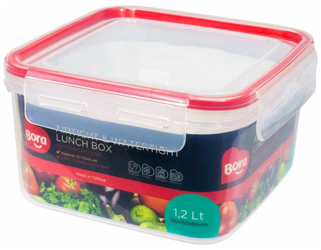 10 цен на Контейнер герметичный квадратный 1.2л ДхШхВ 150х150х86 мм крышка на защелках полоса красная пластик BORA 1 шт