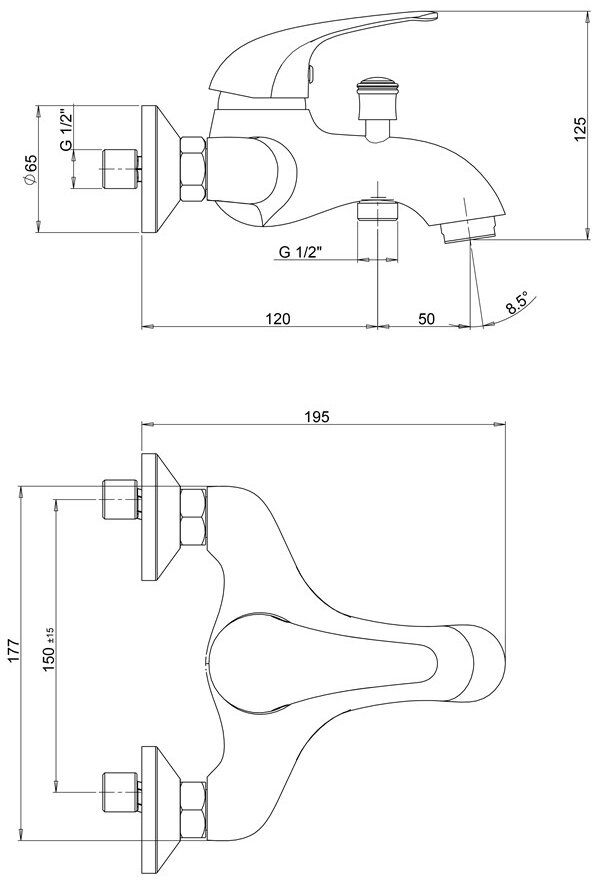 Смеситель на раковину настенный Эверест B46-350 с круглым поворотным изливом, кран-буксы 1/2", хром
