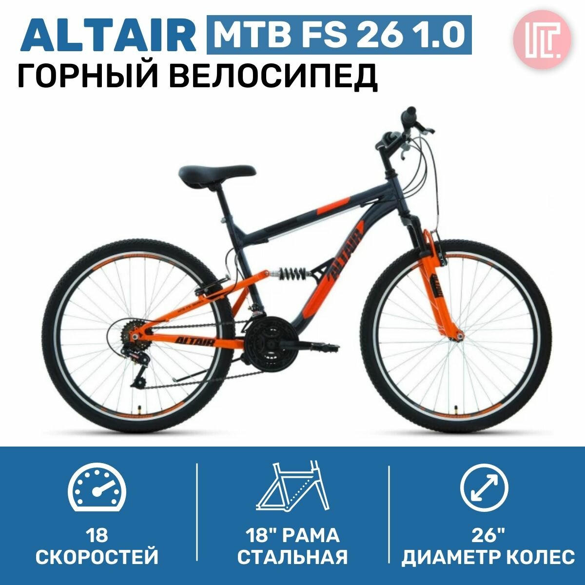 Велосипед ALTAIR MTB FS 26 1.0 (26" 18 ск. рост. 18") 2022, темно-серый/оранжевый, RBK22AL26064 информация: