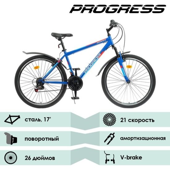 Горный велосипед PROGRESS 26" Advance RUS, цвет синий, размер 17" информация:
