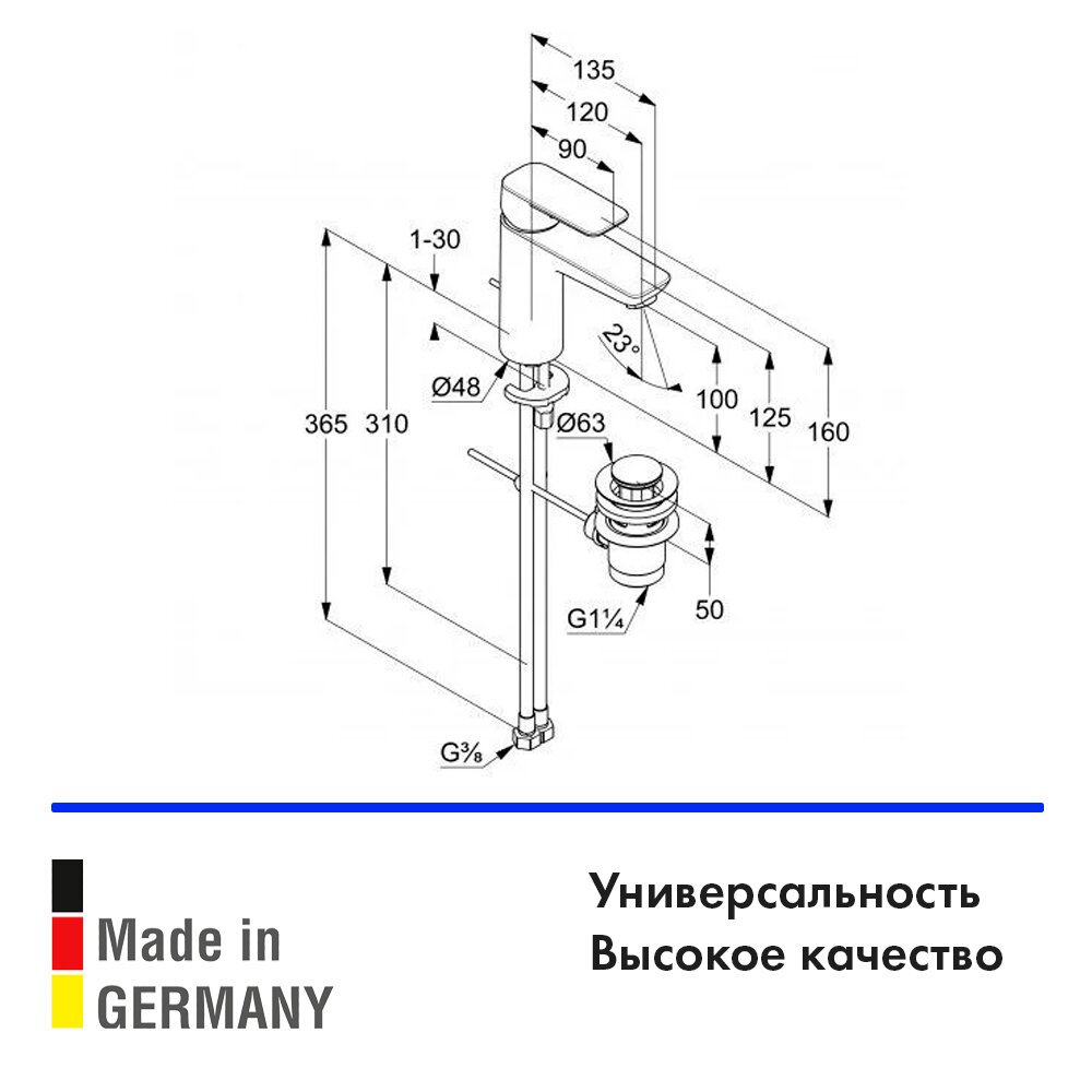 | Длина излива | 135 мм |