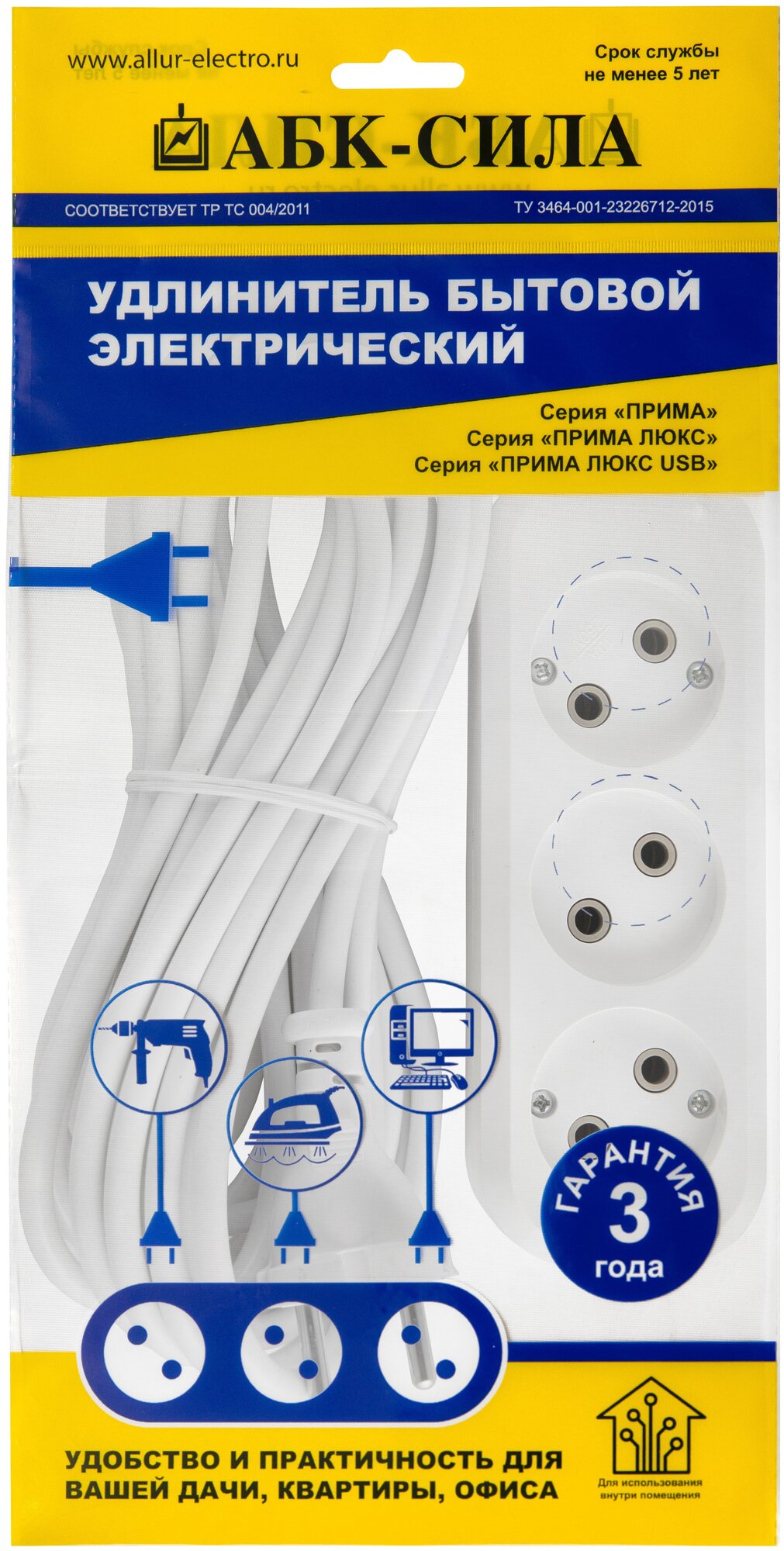 Отзывы на Удлинитель бытовой, сетевой фильтр абк-сила, 3 гнезда, без заземления, 7м, ПВС 2х1мм кв. 10А/220В