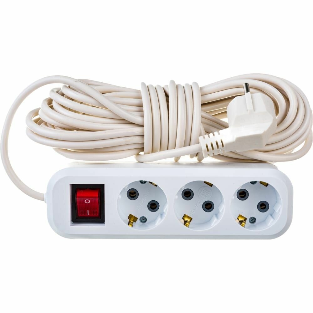 Удлинитель трехместный с/з с выключателем HM03-31-10 3x0,75, 10м, серия Home (У10А-002), белый, STEKKER 39522 (1 шт.)
