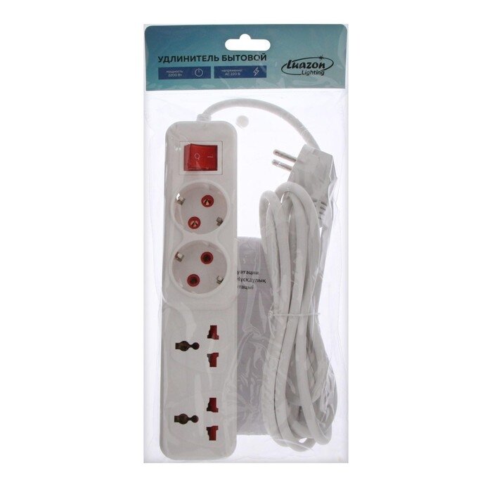 Удлинитель 2 евро+2 унив.роз., 3 м, 2200 Вт, 2х0.5 мм2, с выкл., белый информация: