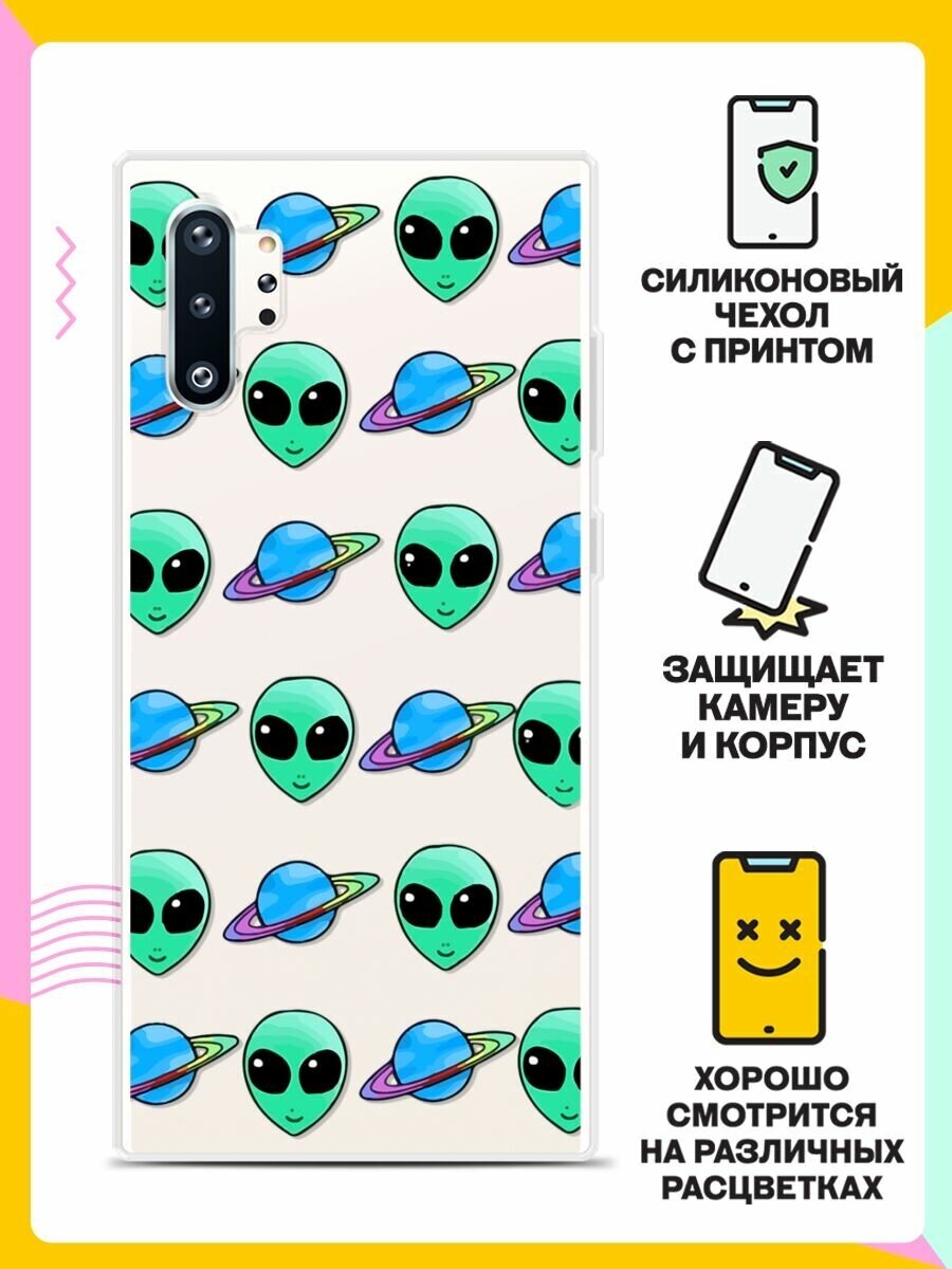 Силиконовый чехол на Samsung Galaxy Note 10+ Узор НЛО / для Самсунг Галакси Ноут 10 Плюс информация: