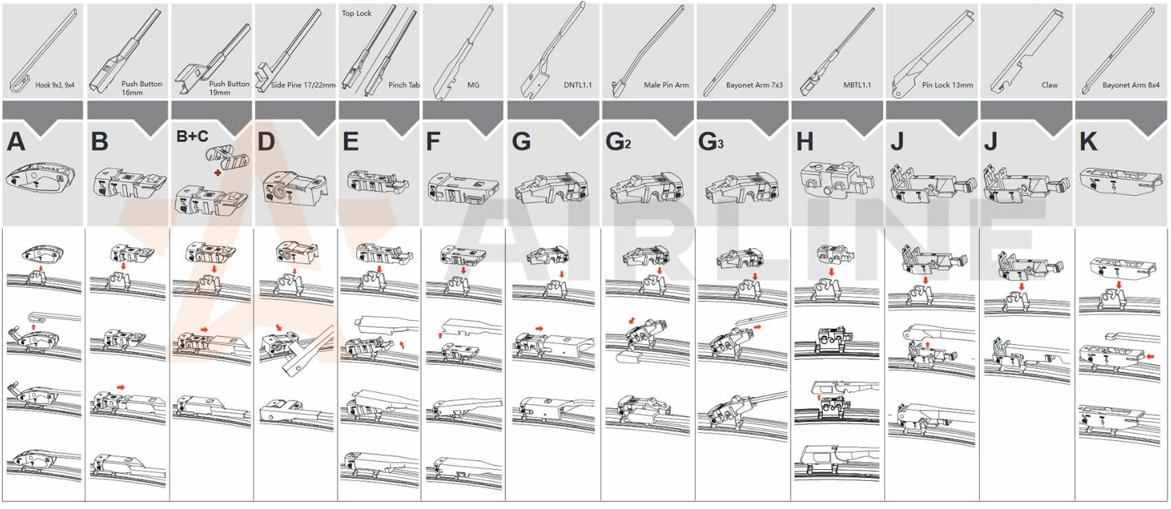 Щетка стеклоочистителя бескаркасная AIRLINE 510мм (20) 10 адаптеров информация:
