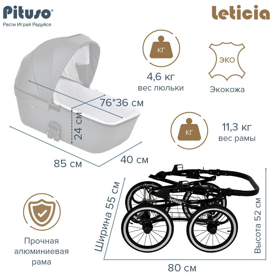 Коляска Pituso Leticia Classic Кожа Beige (коляска 14d) информация: