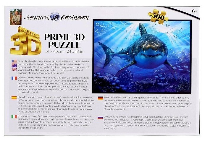 Prime 3D Пазл Super 3D 500 элемент. 10048 «Большая белая акула» лиц. Howard Robinson