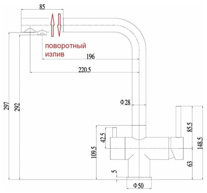 | Длина излива | 220 мм |