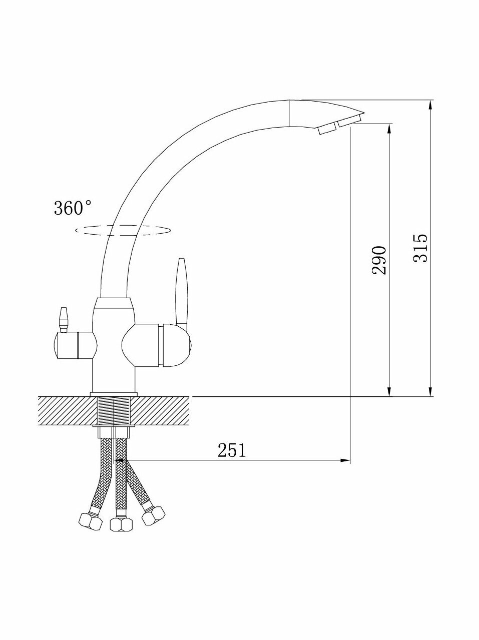 Смеситель для кухни с подключением к фильтру с питьевой водой из нержавеющей стали SUS304 Calorie CAL50116-3