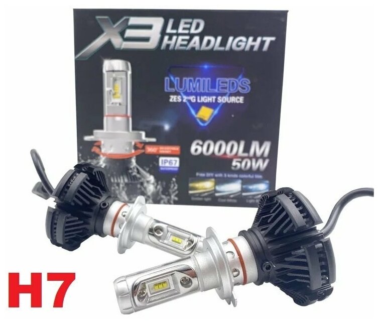 Отзывы на Автомобильные светодиодные LED лампы X3 / цоколь h7 / 6000K / 2шт.