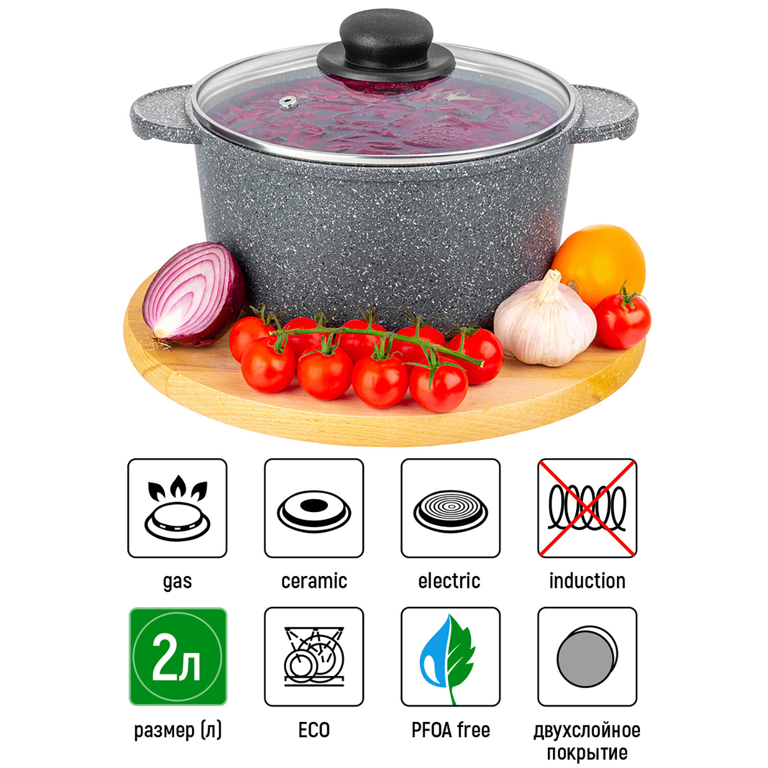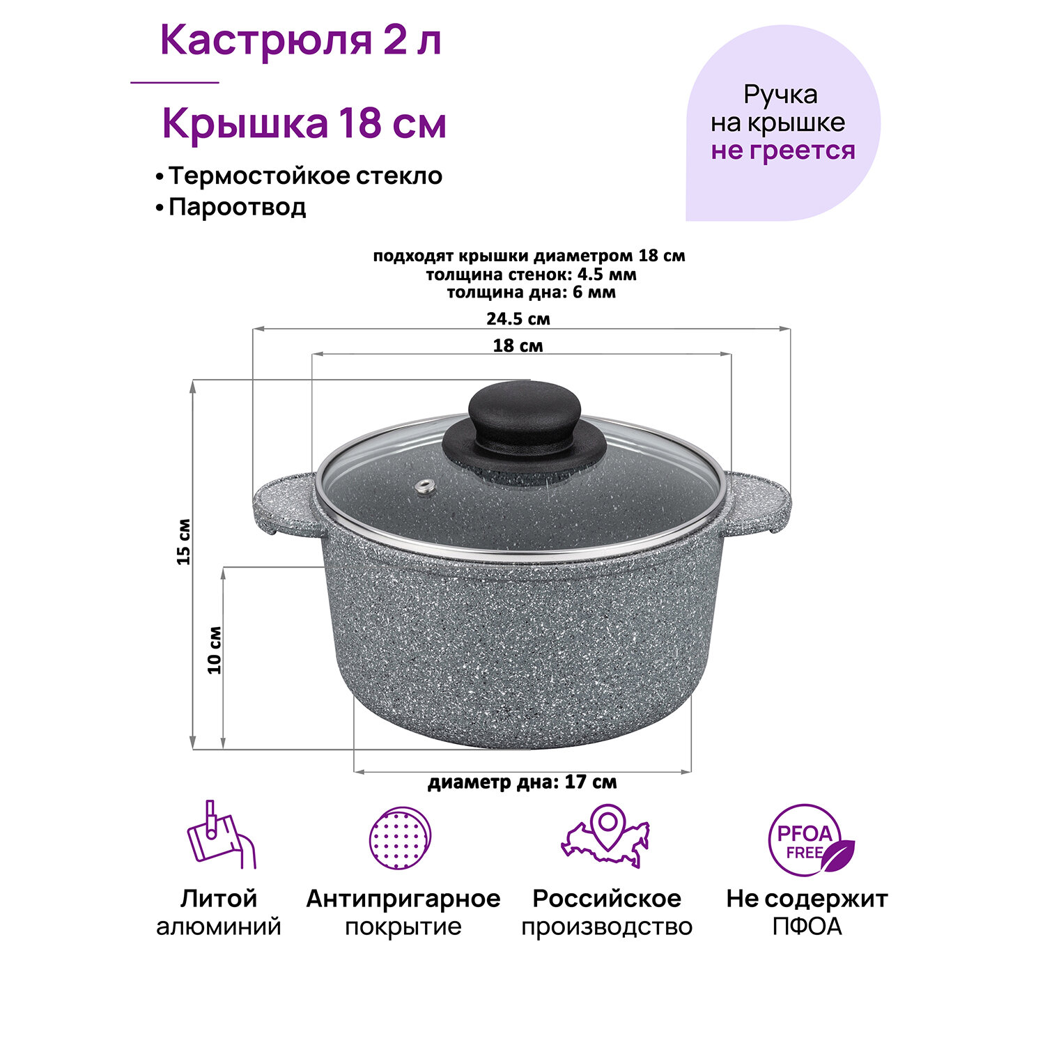 Кастрюля 2 л гармония вкуса "Серый мрамор" С крышкой ф18, 24,5*19*15 см информация: