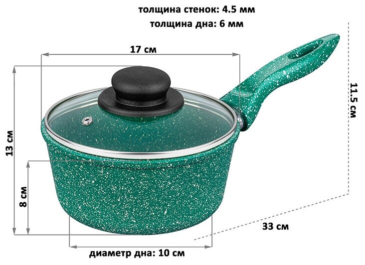Ковш 1,2 л Elan Gallery гармония вкуса Изумруд с крышкой D16, толстостенный из литого алюминия с двухслойным антипригарным покрытием с несъемной ручкой Идеальный подарок на Новый год Рождество День Рождения и 8 марта информация: