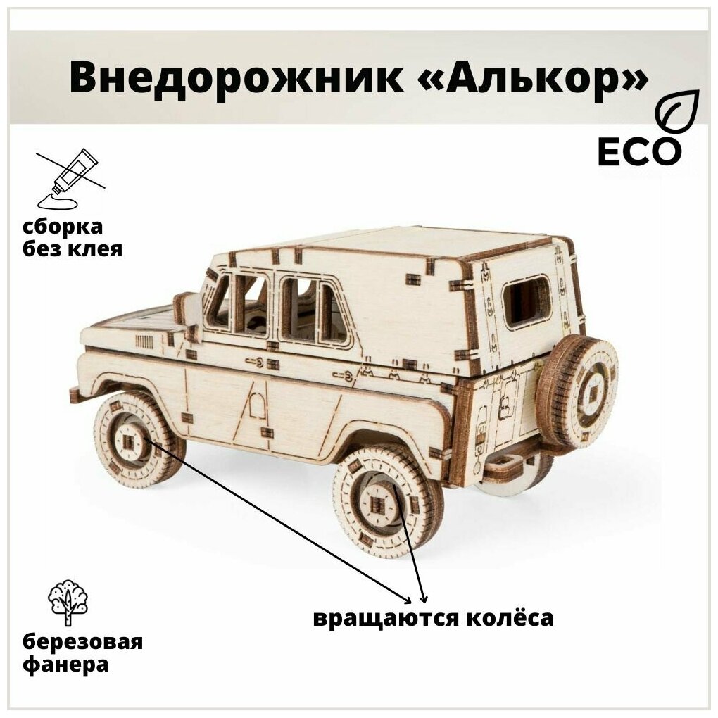 Деревянный Конструктор 3D Внедорожник Алькор 0185