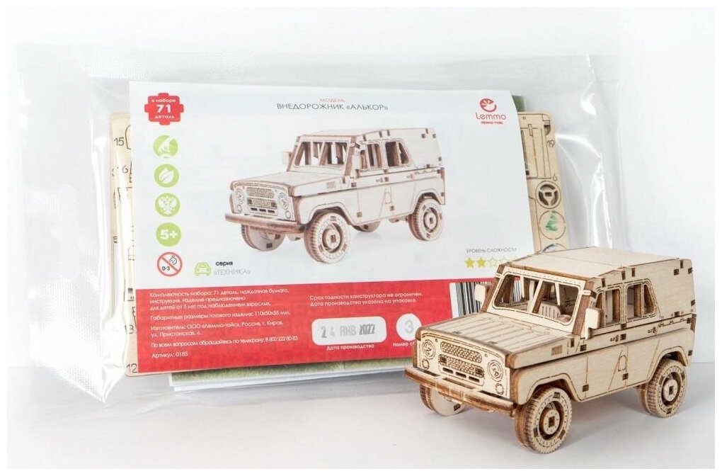 Деревянный конструктор, сборная модель Lemmo Внедорожник Алькор 595 ₽