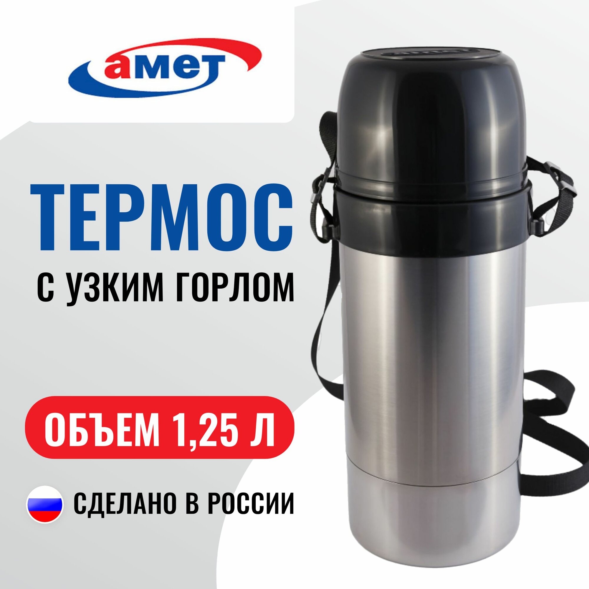 Термос амет 1,25л Дорожный ДН узкое горло на ремне - 1с673 информация: