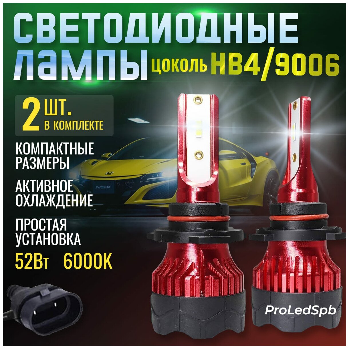 Автомобильные светодиодные LED лампы K5 / 6000K / цоколь HB4 информация: