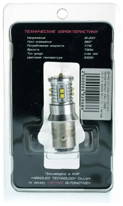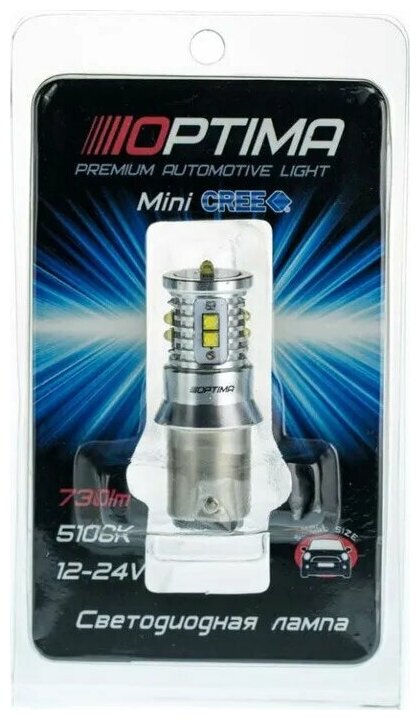 Отзывы на Светодиодная лампа цоколь P21/5W Optima Premium CREE*10LED*5W, 5100K, 50W, 12-24V, (BaY15d), двухконтактная, 1 лампа