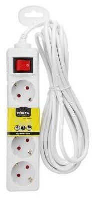 Удлинитель FORZA 907-029, 4 розетки, с/з, 16А / 3500 Вт