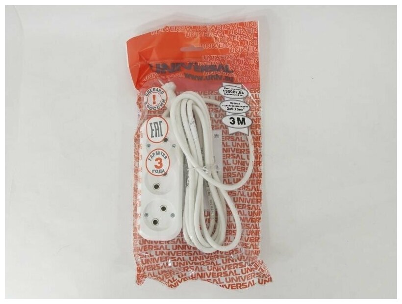 Удлинитель UNIVersal У6-639М (639М-02), 3 розетки, 2 м, б/з, 6А / 1300 Вт
