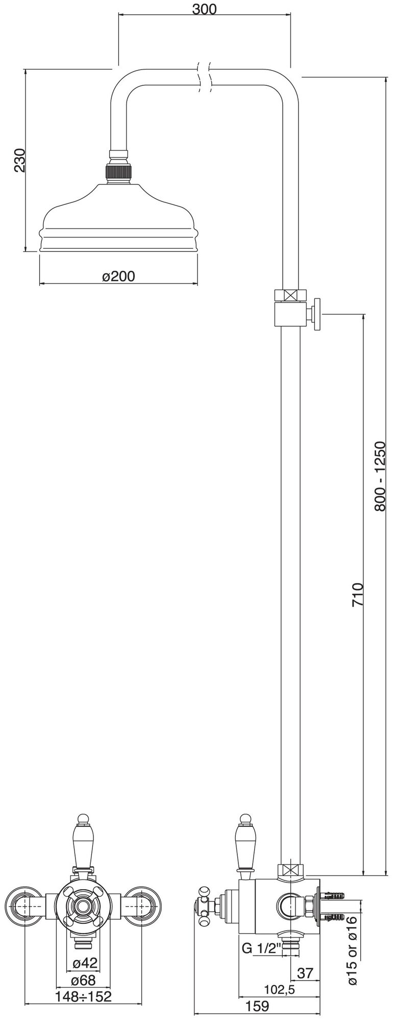 Смеситель Cezares VINTAGE-D-T-01-Sw-N термостатический на один выход, верхнее подключение информация: