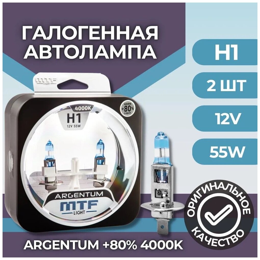 Набор ламп H1 12V 55w ARGENTUM +80% 4000K MTF информация: