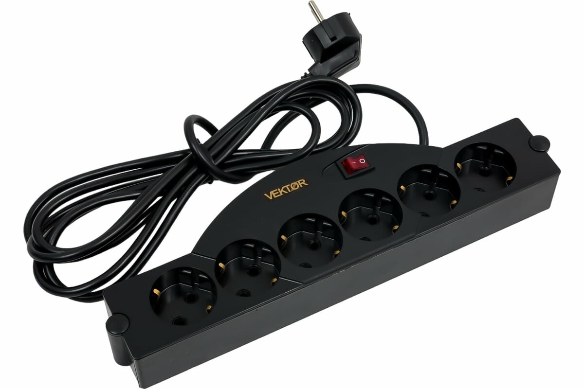 10 цен на Сетевые фильтры Vektor Сетевой фильтр Vektor SOFT черный 3м (для быт. и офис.техники с автомат.предохранителем)
