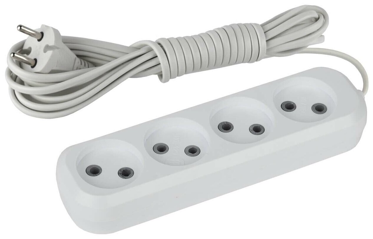 10 цен на Удлинитель 4гн без З/К 5м белый 6А ШВВП 2х0,75 UX-4-5m ЭРА (1/20/720)