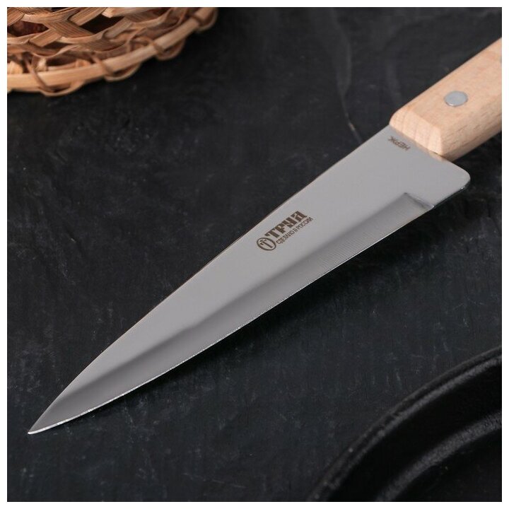 10 цен на Труд Вача Нож кухонный "Универсал" поварской, лезвие 12,8 см, с деревянной ручкой