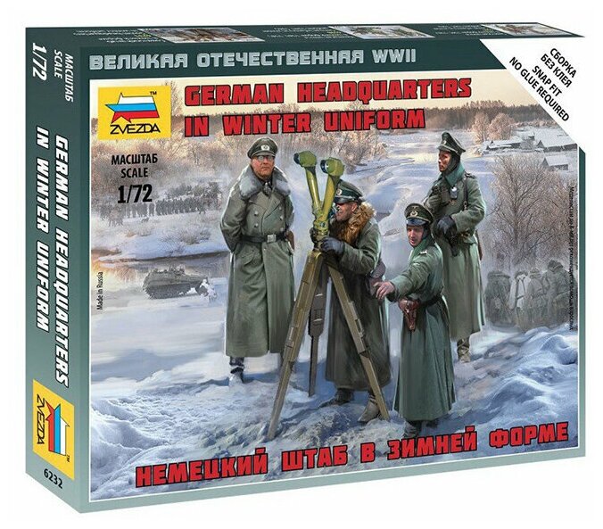 Сборные солдатики ZVEZDA Немецкий штаб в зимней форме, 1/72, ZV-6232