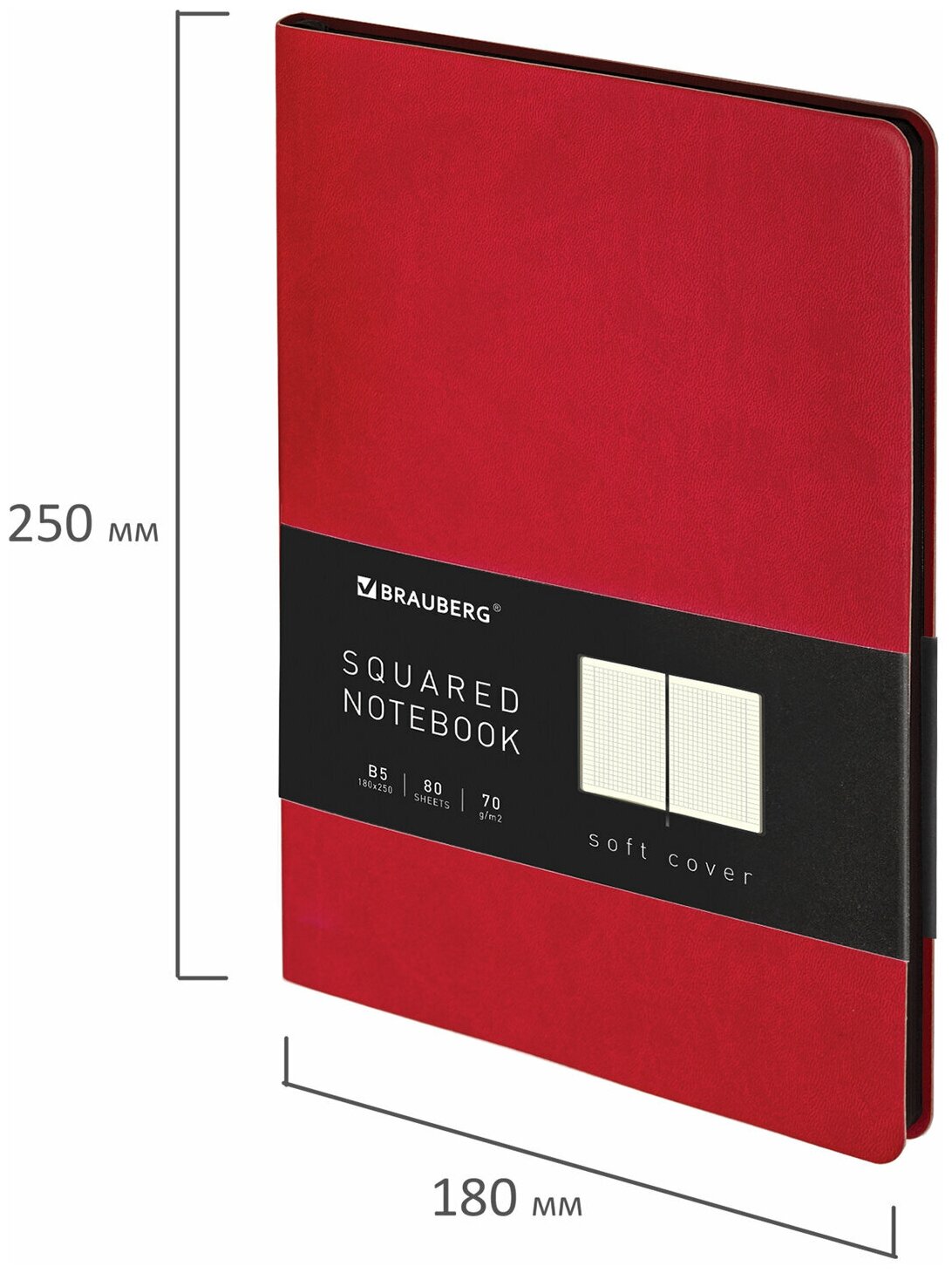 Блокнот большой формат (180х250 мм) B5, BRAUBERG "Metropolis Mix", под кожу 80 л., клетка, красный, 113312 информация:
