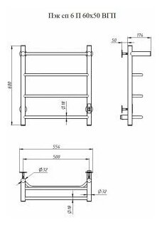Электрический полотенцесушитель Тругор Пэк сп 6 ВГП 80x50 универсальный