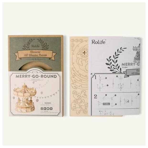 Деревянный конструктор Robotime Rolife - Карусель (Merry-Go-Round); 178 дет; 14,9*14,9*11,7 см; арт. TG404 информация: