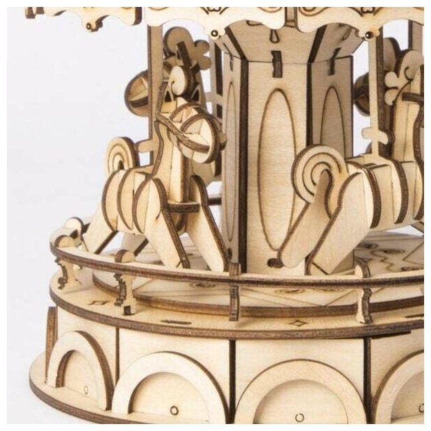 10 цен на Деревянный конструктор Robotime Rolife - Карусель (Merry-Go-Round); 178 дет; 14,9*14,9*11,7 см; арт. TG404