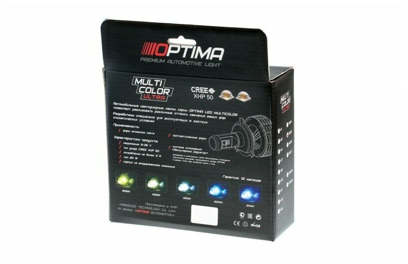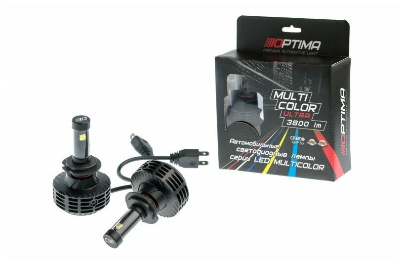 Cветодиодные лампы H7 Optima LED MultiColor Ultra, CREE-XHP50, 3800Lm, 3000K/4200K/5100K/ 6200K/8000K, 12-24V, комплект - 2 лампы информация: