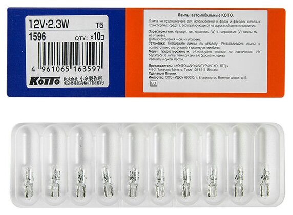 10 цен на Лампа дополнительного освещения Koito 12V 2.3W - без цоколя T5 (кратность 10 шт.)