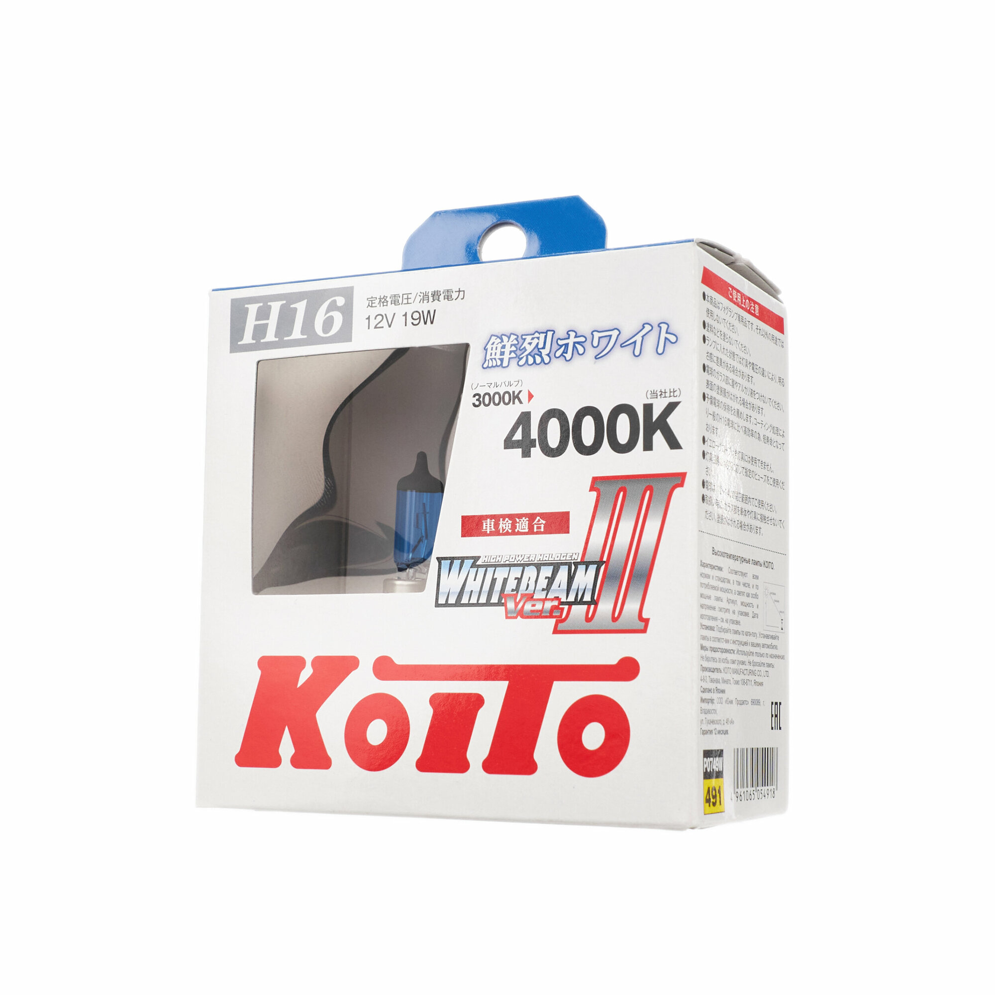 Лампа автомобильная галогенная KOITO - H16 - WhiteBeam III 4000K (12v 19w) (2 шт.) информация: