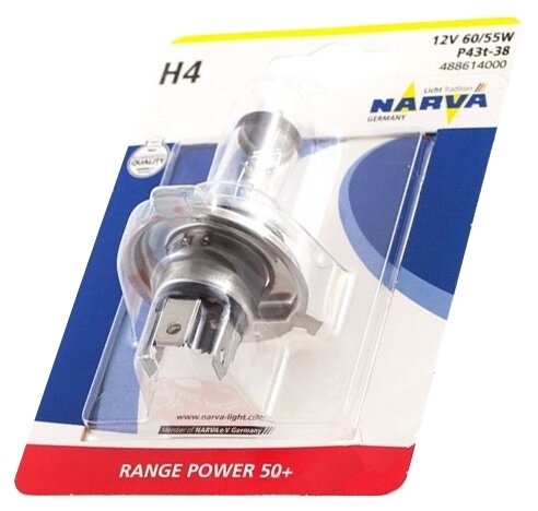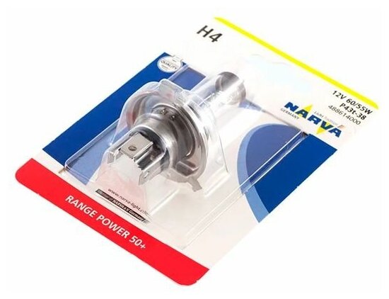 NARVA 488614000 Лампа H4 RP 50+ 12V60/55W P43T-38 NVA (блистер 1 шт.)