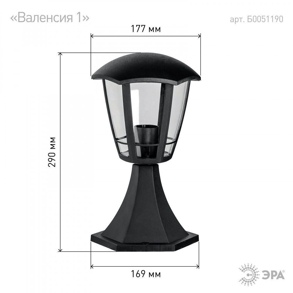 ЭРА Светильник садово-парковый 6гран черный напольный 29см E27 IP44(У1) НТУ 07-40-003 «Валенсия 1» (8/48)