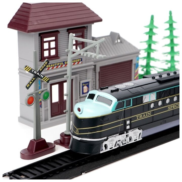 | Подробная комплектация | железная дорога, локомотив, вагоны, светофор, шлагбаум |