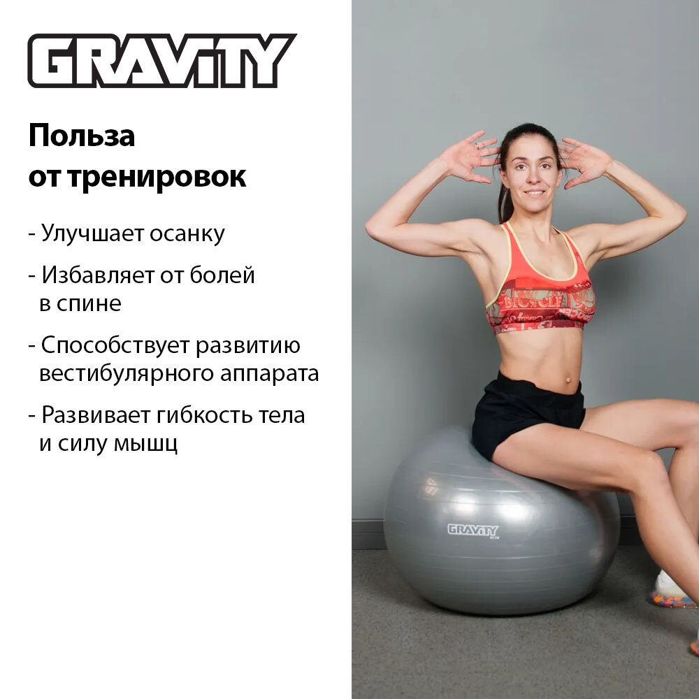 10 цен на Фитбол Gravity Gymball, 65 см, серебристый, с насосом