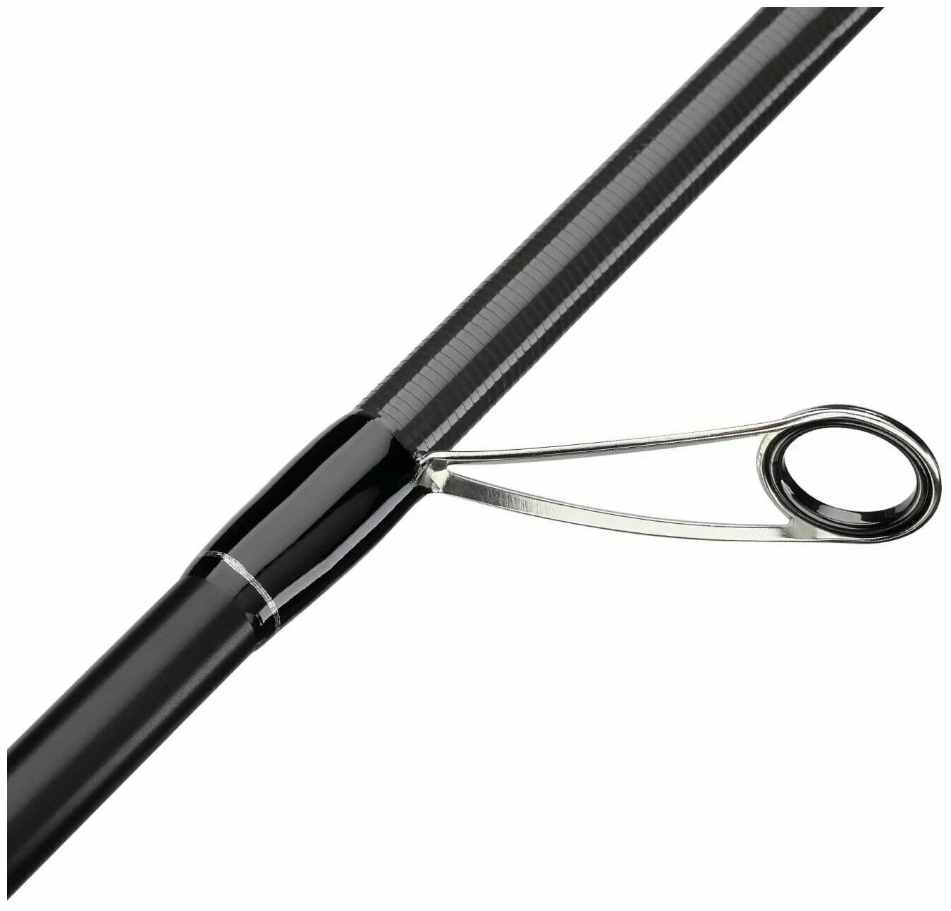 | Комплектация | Удилище оснащено современными пропускными кольцами в противозахлёстных рамах, которые расставлены по KR-концепции. В них использованы тонкие вставки, устойчивые к протиранию, наподобие колец Torzite от Fuji. Рукоятка из материала EVA идеально сочетается с катушкодержателем VSS, её задняя часть имеет специальный скос для удобного удержания удилища во время силового заброса, а также она служит упором во время борьбы с крупной рыбой. |