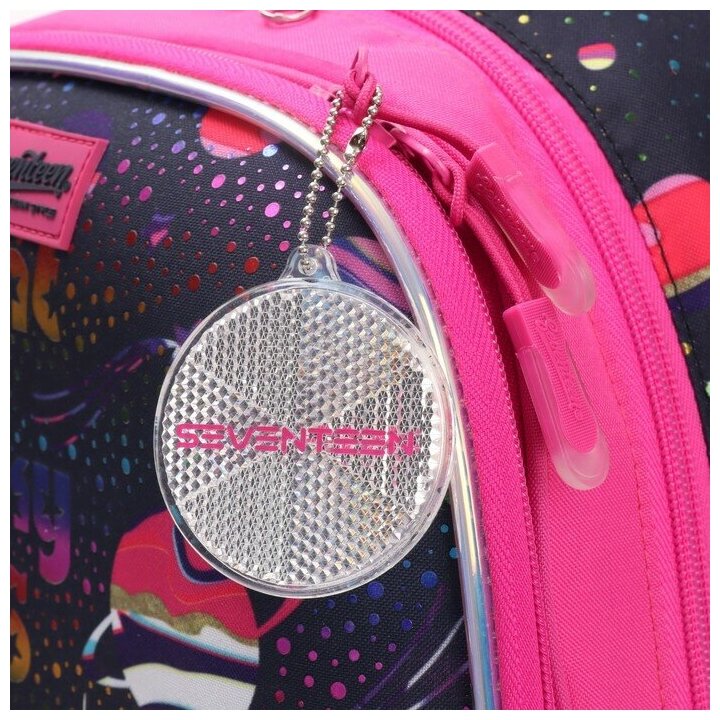 Ранец Seventeen Звери в космосе SKHB-UT3-413 облегченный с эргономической спинкой и светящимся замком, для девочек.