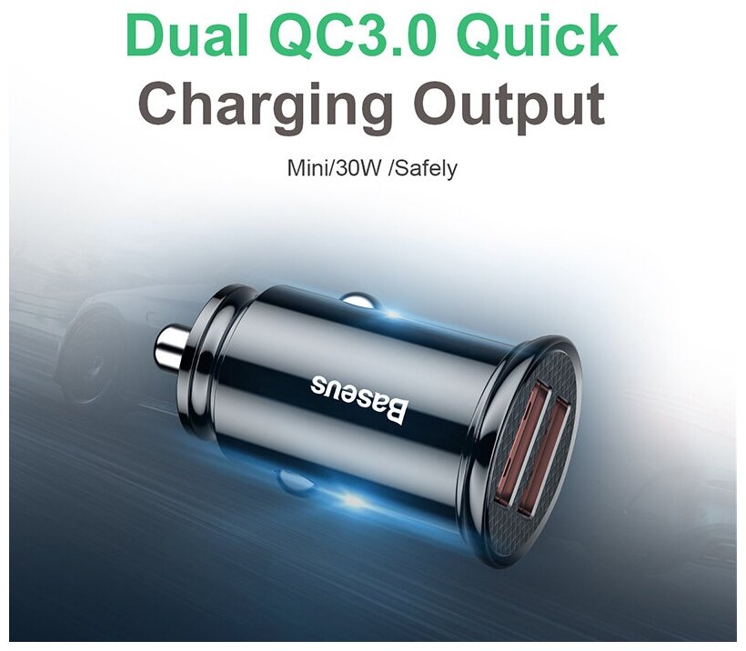 Отзывы на Автомобильное зарядное устройство BASEUS Circular Plastic, 2xUSB, 5A, 30Вт, черный