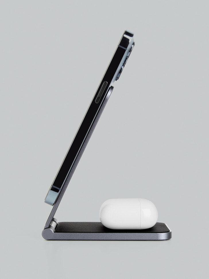 Беспроводной сетевой адаптер EnergEA MagDuo Air 2в1 foldable для iPhone 15W + Airpods 5W Gunmetal (MAGDUO-GUN) информация: