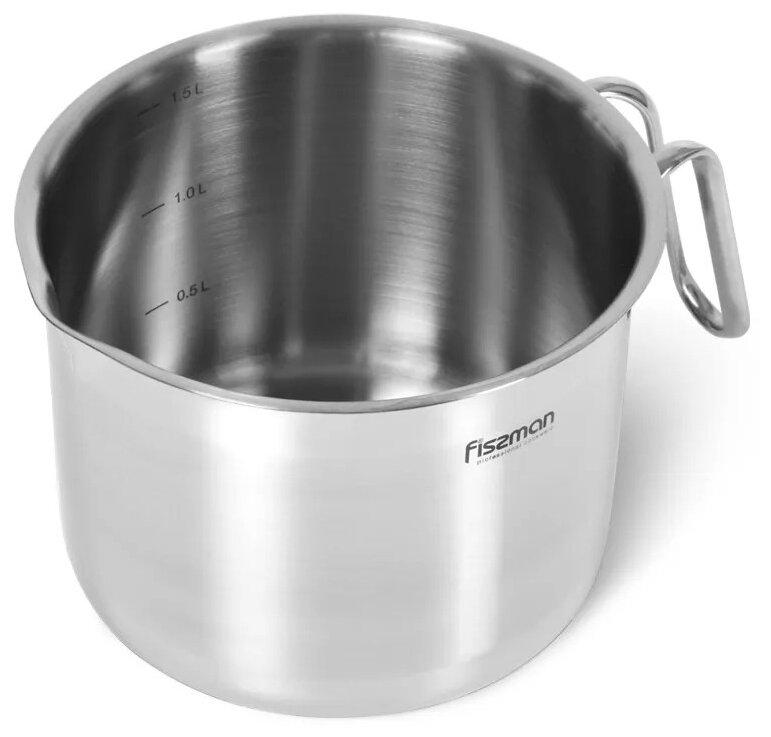 5101 FISSMAN Кружка для кипячения молока 14x11см / 1,5л (нерж.сталь) Ручка-нерж.сталь; Термоаккумулирующее многослойное дно; Индукция