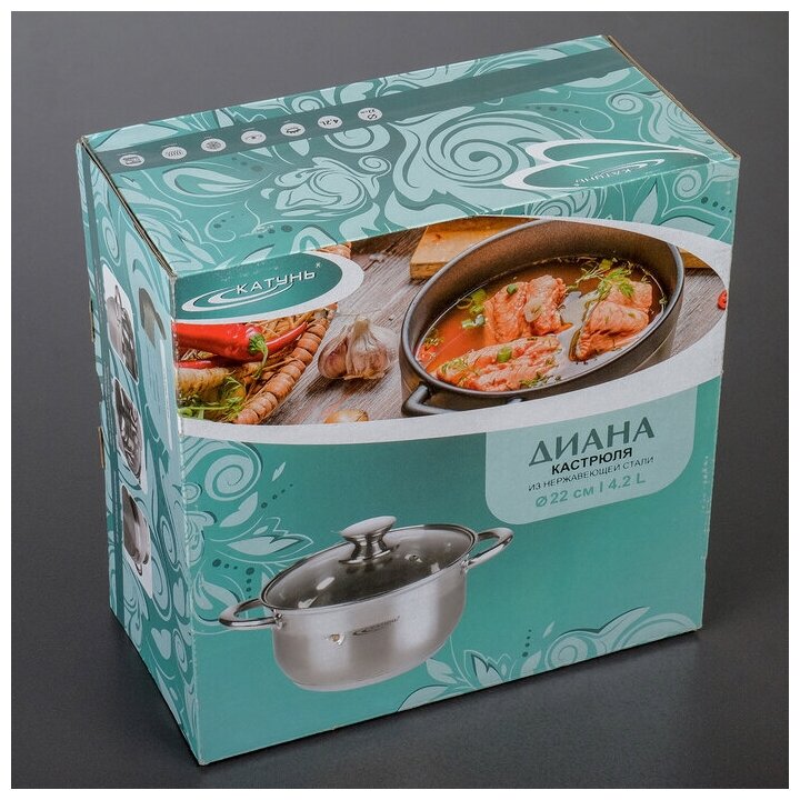 Кастрюля Диана, диаметр22 см, 4,2 л, капсульное дно, стеклянная крышка, индукция информация: